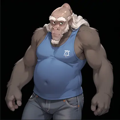 anthro, gorilla, Zugor, gorilla snout, old, monobrow, pointed bald head, facial hair, bearded, black eyes, fur
