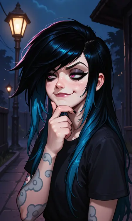 触发词: emo发型,长不对称刘海,侧发,长发,眼线