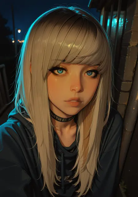 트리거: scenequ33n, 각진 앞머리, 긴 머리