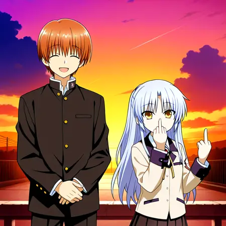 대충 만든 LoRA이기 때문에 품질은 기대하지 마세요. 재미있는 분위기를 즐기기 위한 것입니다. 반드시 캐릭터 두 명이 좌우에 서 있으므로 Regional Prompter 등을 사용하면 더 정확한 결과를 얻기 쉬우나, 굳이 그럴 필요는 없습니다. 몇 번 생성해보고 재미있는 결과가 나오면 그것이 목표입니다.