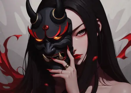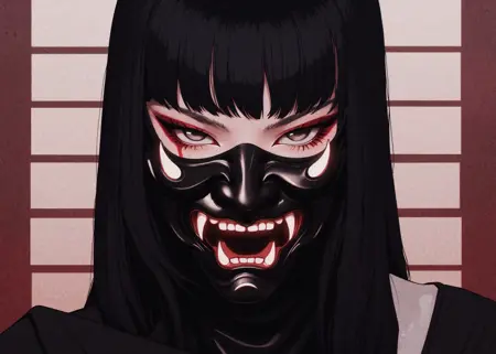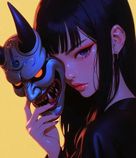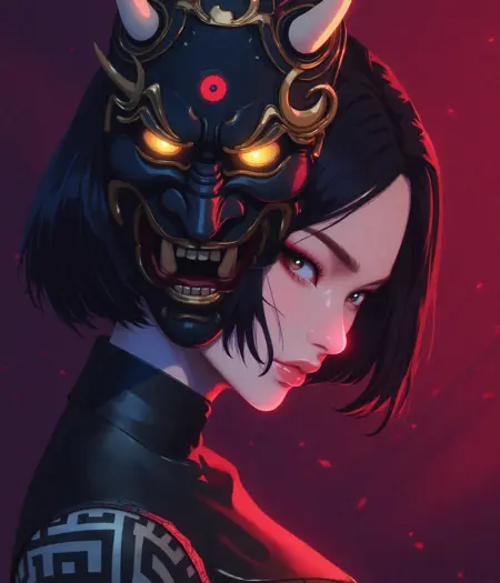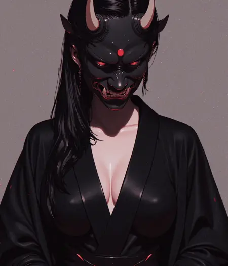 它主要基于他早期的作品进行训练,专注于佩戴Hennya面具的美丽女性。
