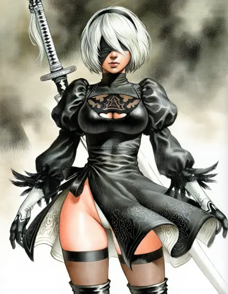 • If you prompt for 1girl, black hair, large breasts you'll get a character who more or less looks just like Druuna.