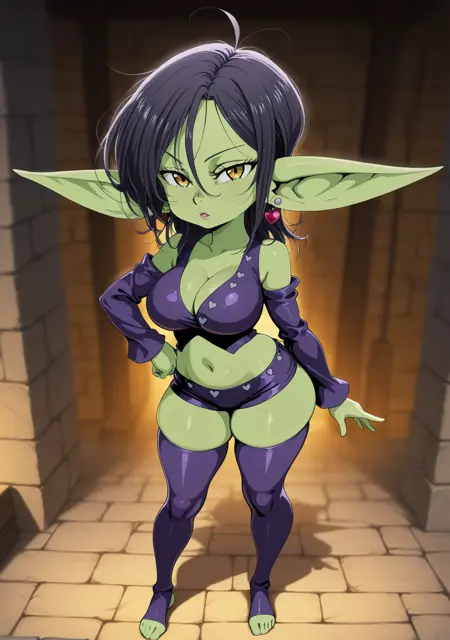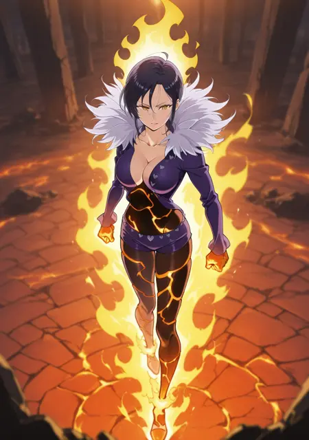 프롬프트: merlin_7ds, merlin, 7ds, nanatsu no taizai, 검은 머리, 털 목도리, 보라색 옷, 윗스커트, 1소녀, 검은 머리, 큰 가슴, 가슴 사이 틈, 분리된 소매, 스타킹, 노란 눈,