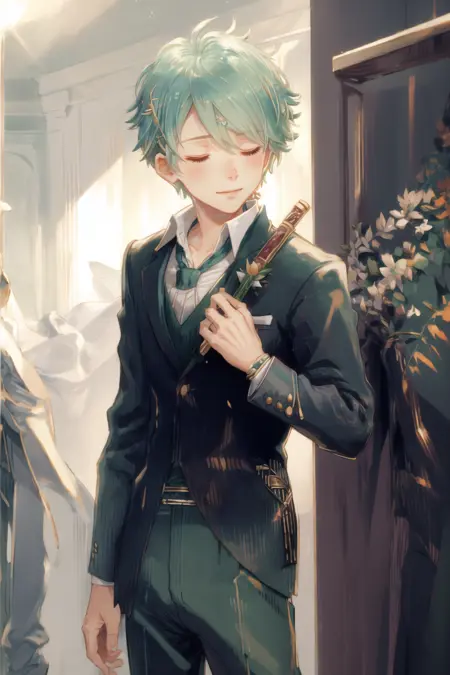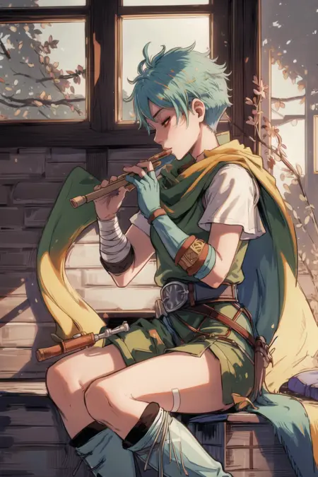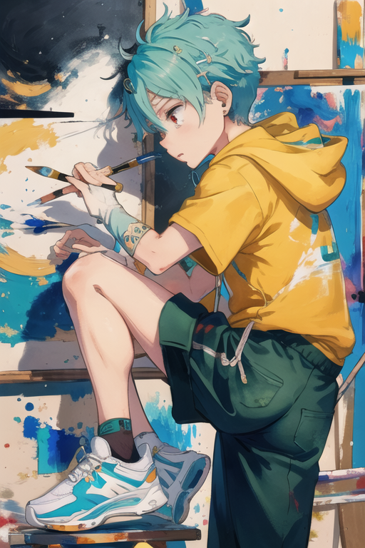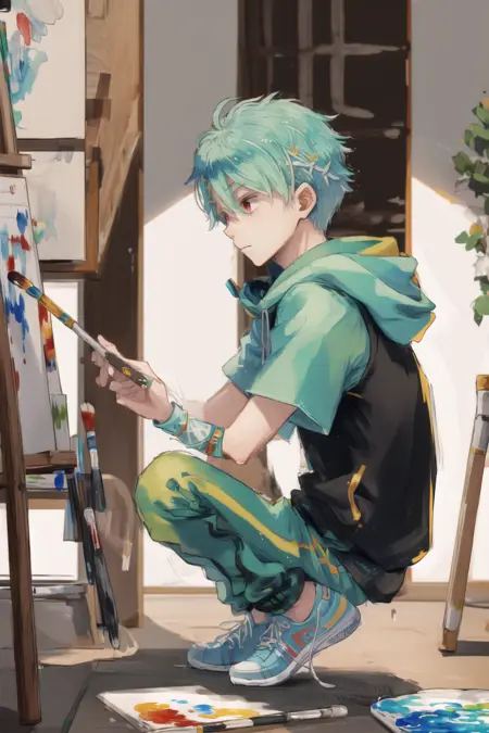 手の描写は、依頼内容によって少し不安定になることがあります。フルートを演奏する際の彼の手の表現には最善を尽くしましたが、常に成功するわけではありません。同じように、彼が絵を描いているデモ画像でも同様です。