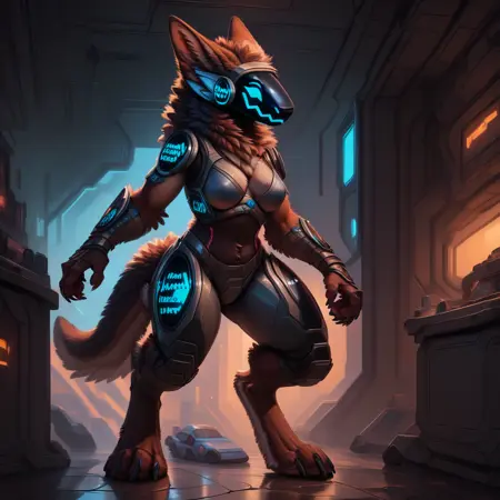 Protogen, protogen visor, protogen face,glowing,breasts,claws,animal ears,furry anthro,body fur,tail,digitigrade,