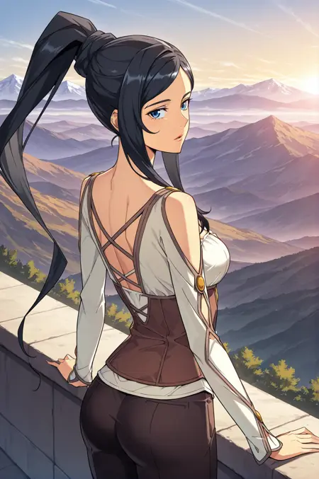 | トレーニングワード | Jane, 1 girl, solo, blue eyes, long hair, black hair, high ponytail, side bangs, long side locks, center parted hair, narrow waist,コピーしました! Jane_command, brown and black dress, asymmetrical dress, open front dress, chest cutout, gold trim, criss-cross chest straps, chest cutout, lace high collar, ornamental collar, sleeveless dress, shoulderless cape, blue short cape, detached sleeves, white arm sleeves, white thigh-high tights, high heels, gem bracelet,コピーしました! Jane_daywear, white and brown outfit, white blouse, open shoulders, cutout shoulders, long sleeves, cutout shoulders, criss-cross back straps, brown straps, gold buttons, structured top, tight pants, black pants,コピーしました! |