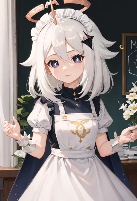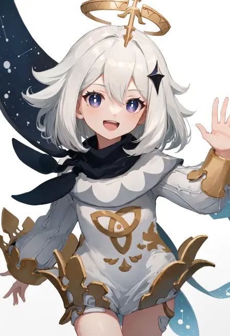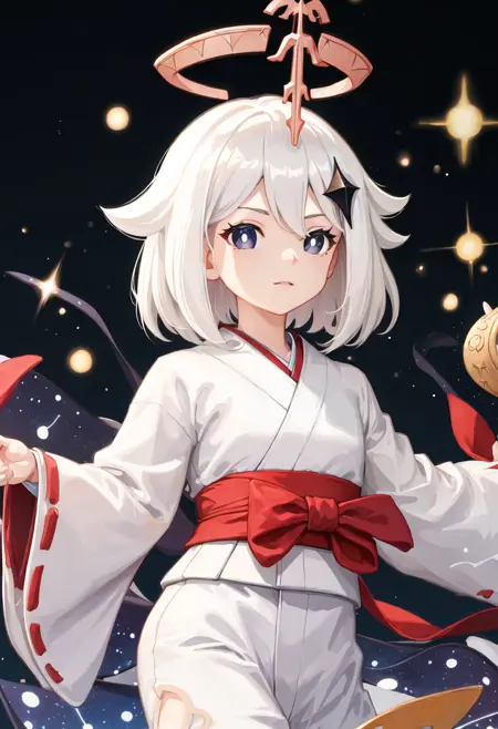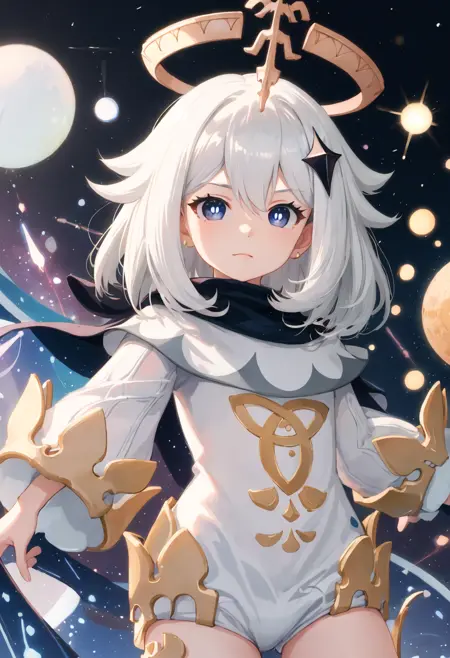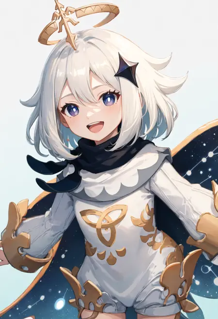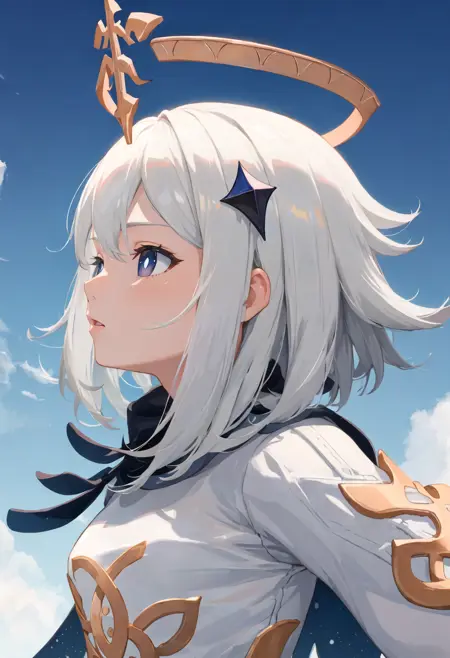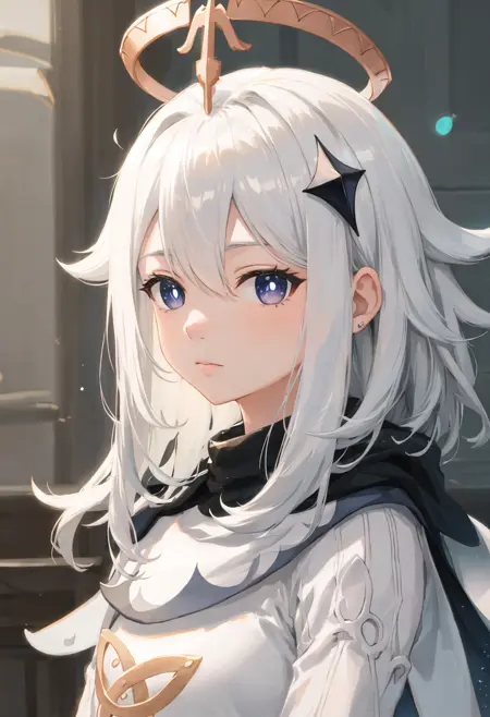 トリガー語は paimon_genshin であり、プリューンされたタグは white_hair, halo, hair_ornament, hair_between_eyes, blue_eyes, bangs, short_hair です。ある特徴(例:髪の色)が時々安定しない場合、これらのタグをプロンプトに追加してください。