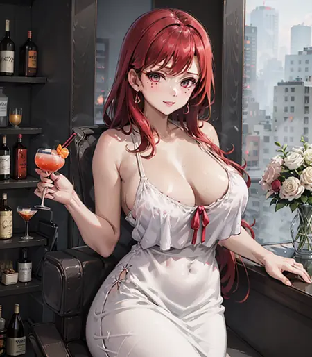 白色鸡尾酒裙装有时无法区分 bodysuit 和 cocktail_dress,因此建议在正向提示中加入 cocktail_dress,在负向提示中加入 bodysuit, cocktail,以降低错误穿着或她手中出现鸡尾酒(!)的几率。