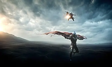 spnj 스타일, 공중을 나는 SF 캐릭터의 컴퓨터 생성 이미지
