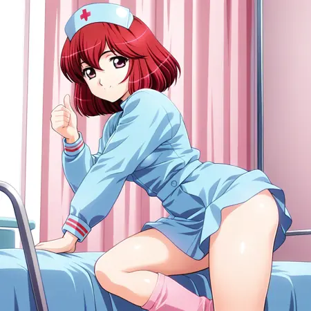 게임 내 CG에는 간호모자가 포함되어 있지 않으므로, 원하는 대로 'nurse cap with red cross' 등을 추가하세요. (간호모자 없이도 생성될 수 있음)
