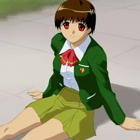 트리거 단어 및 추천 프롬프트: MaoSeiden2025IL, 1girl, 슬렌더한 몸매, 단발, 갈색 머리, 갈색 톤의 붉은 눈, 가슴, 레트로 아트 스타일, 레트로 애니메이션 셀 셰이딩, 1990년대 \(스타일\), 녹색 치마, 녹색 재킷, 흰색 셔츠, 빨간 리본,