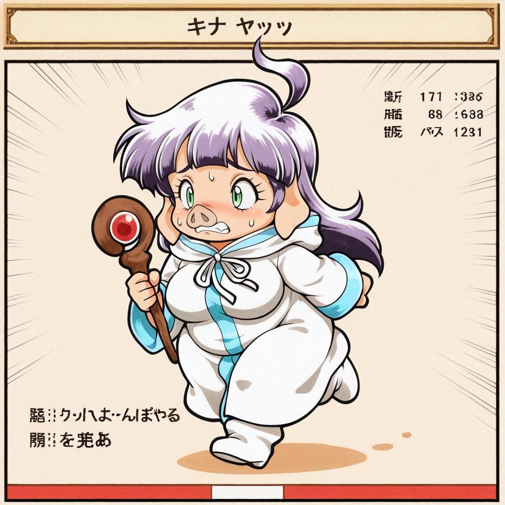 원하는 결과를 얻는 데 도움이 될 수 있는 기타 프롬프트: shortstack, chibi, fat, plump, fantasy, warrior, 1990s \(style\)