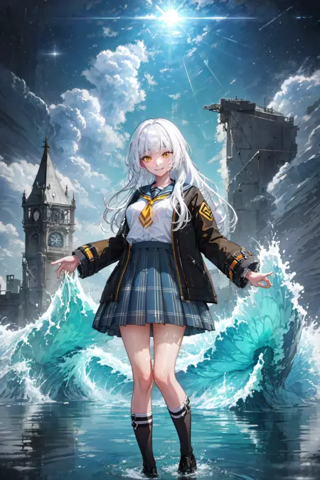 rio,白发,长发,齐刘海,黄眼睛,中等大小胸部