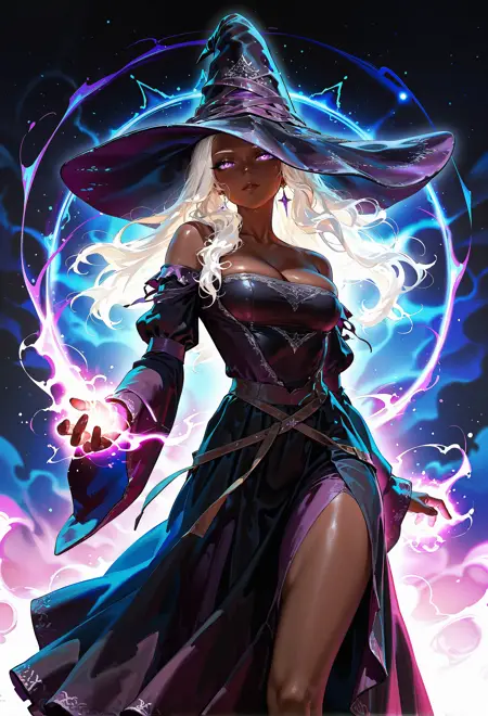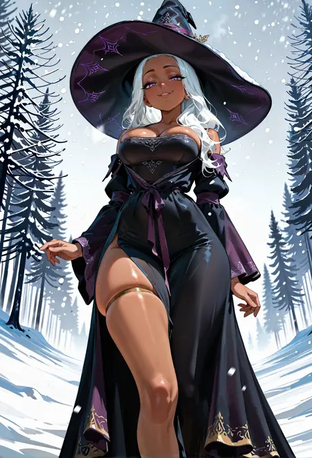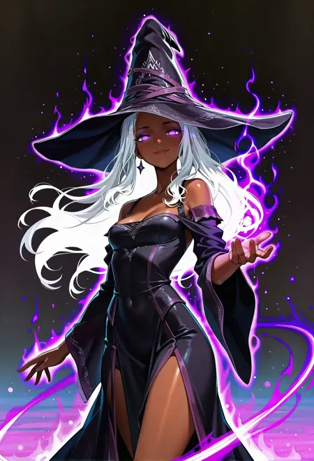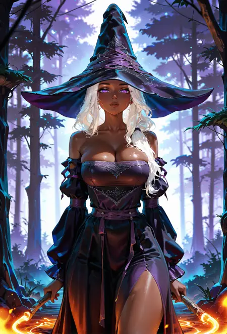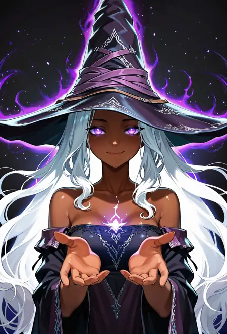 Trigger words: RecluseER, white hair, witch hat, dark skin