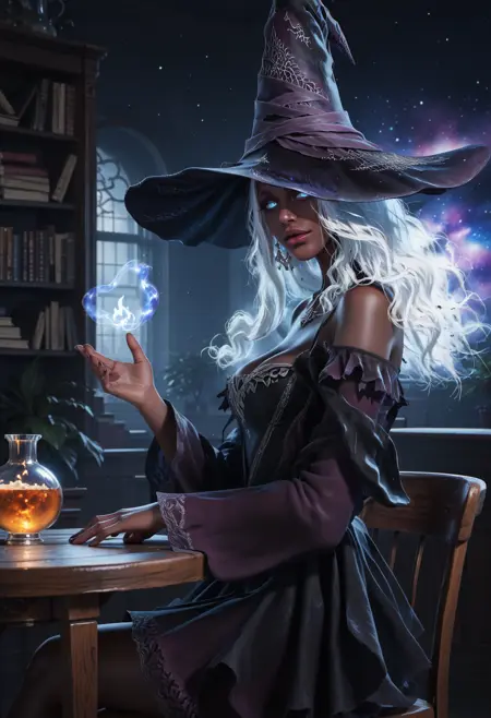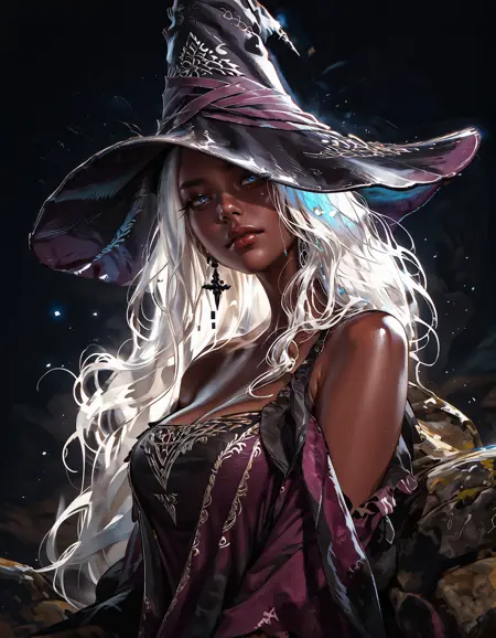 Trigger words: RecluseER, white hair, witch hat, dark skin