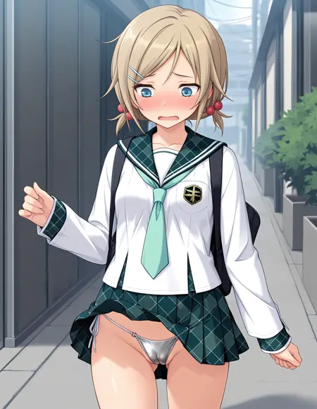 asahi-d-lutwidge, blonde hair, short hair, low twintails, hairclip, white hairclip, blue eyes, small breasts,