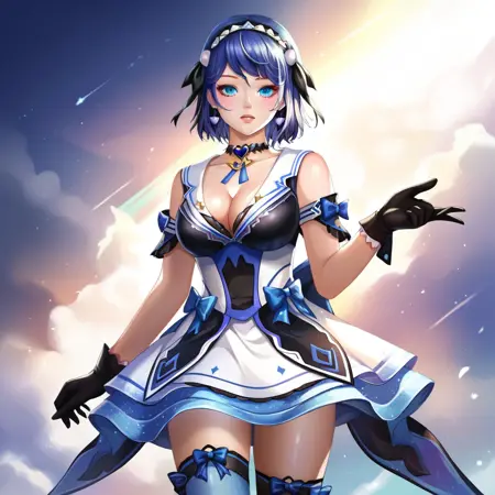 | 학습된 단어 | CSO_BR_Miho, 1girl, solo, blue eyes, blue hair, short hair, side ponytail, hair ornament, gloves, thighhighs, asymmetrical legwear, breasts, dress, jewelry, elbow gloves, single thighhigh, kneehighs, bare shoulders, neven legwear, cleavage, socks, high heels 복사됨! CSO_Idol_Miho, 1girl, solo, breasts, blue eyes, blue hair, short hair, dress, choker, gloves, black gloves, cleavage, thighhighs복사됨! |