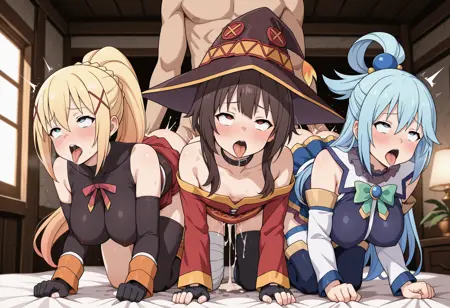 今回はかなり面白いものを作りました。これは、3人の女の子が横並びになるように生成するLoRAです。一人はドギースタイルで性交され、他の二人は指で性器を刺激されています。前からと第一人称視点(POV)の2つのビューがあります。前からのビューでは、サンプルをご覧いただくとわかるように、男性の頭部がフレーム外に収まるか、全身が含まれるかを選べます。非常に一貫性がありますが、特にPOVビューの手の描写を完璧に仕上げるには、数回生成する必要があるかもしれません。強度0.6でも動作しますが、0.8~1を推奨します。トリガーと推奨プロンプトは以下の通りです。