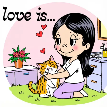 🔹 특징적인 캐릭터와 세밀한 색조로 "사랑은..." 스타일의 감동적인 장면을 생성합니다.