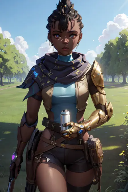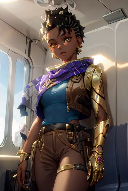 激活词: Astra, Astra from Valorant, short hair, black hair, dread hair, dark skin, black skin, brown eye