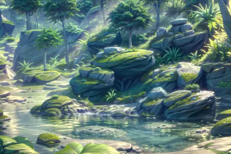 植物男孩,尖刺帽,花帽,橡果帽,水果帽,长鼻子,大鼻子,红鼻子,树精,蟾蜍(动物),金链,和服,夹克,蚊子,毛茸茸,电脑,显示器,屏幕,室内,室外,白天,夜晚,池塘,河流,发光粒子,萤火虫