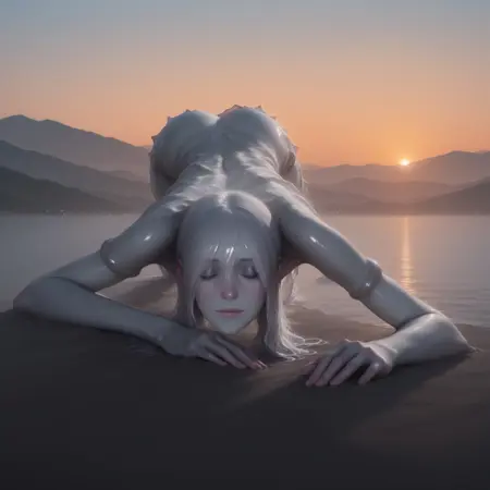 트리거 단어: 달팽이여성, 몬스터 걸, 색깔 있는 피부, 눈 위의 머리카락, 눈 감음, 벌거벗음,