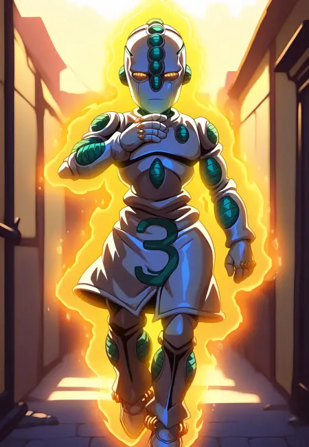 태그: echoesact3, 솔로, 풀바디, 스탠드(조조), 1남자, 색칠된 피부, 노랑색 눈, 동공 없음, 로봇, 관절, 인간 없음
