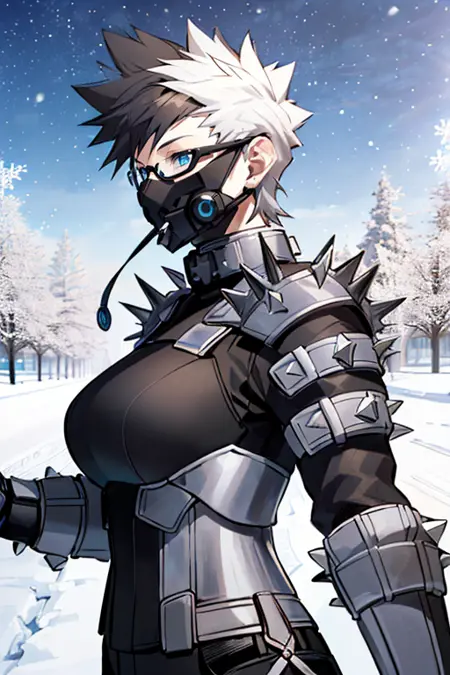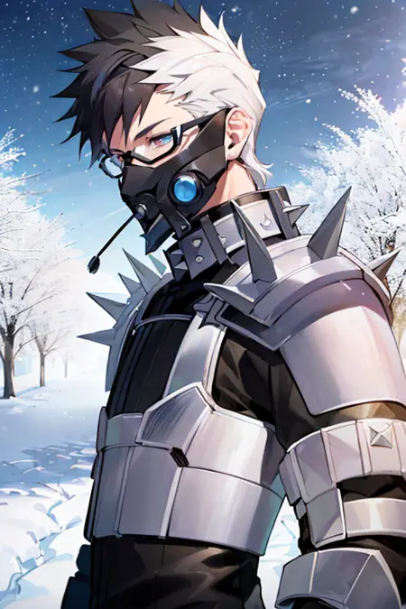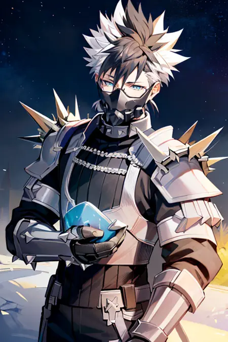 두 번째 승격: 안경, 입 마스크, 검은 갑옷, 어깨 갑옷, 검은 장갑, 검은 바지 ()