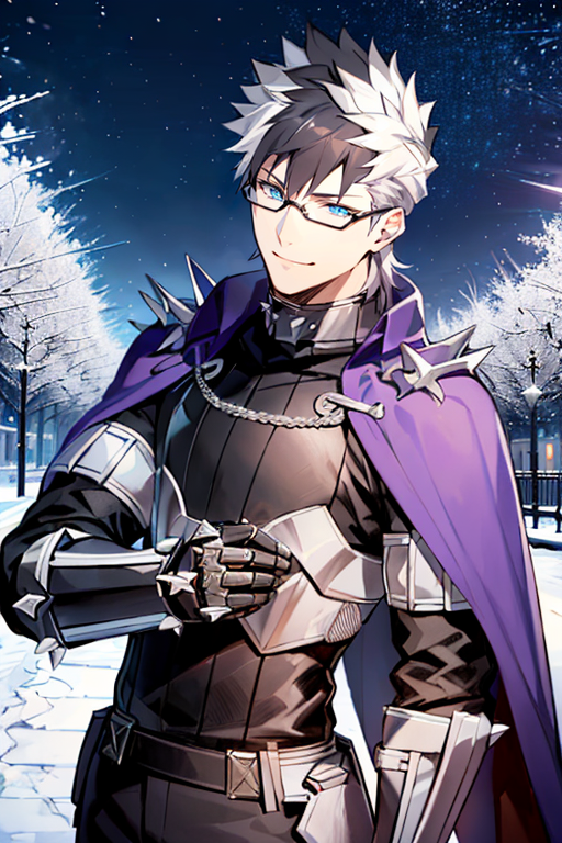 세 번째 승격: 안경, 보라색 망토, 어깨 갑옷, 검은 갑옷, 검은 장갑