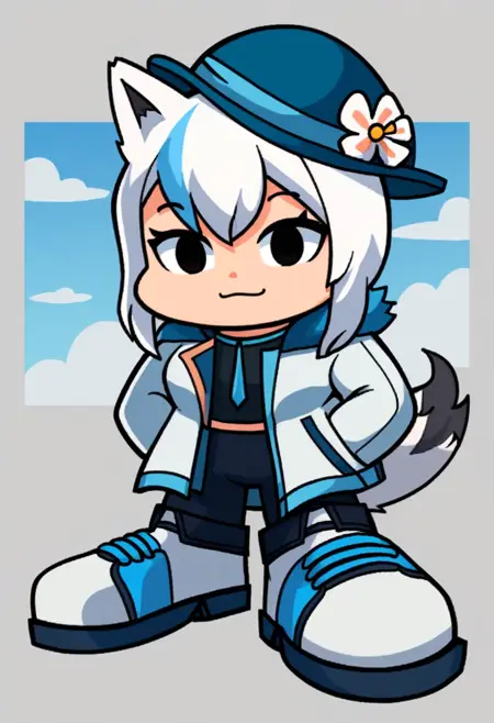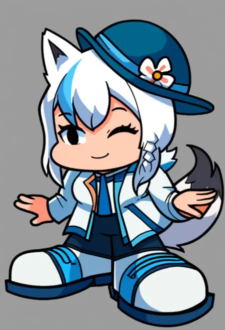 | Trained Words | ShirakamiFubukiFNF, 1girl, white hair, fox ears, white tail, white coat, blue hat with a white-orange flower, black shirt, black skirt, white and blue shoes, sky blue laces, short, chibi, black eyes, 2d art, digital art, 2d, cartoon, cartoon style, cartoonish,Copied! |