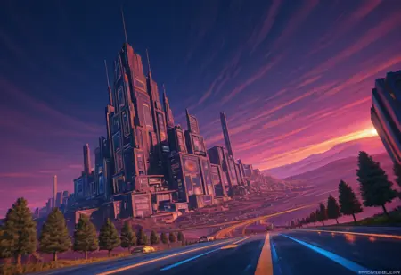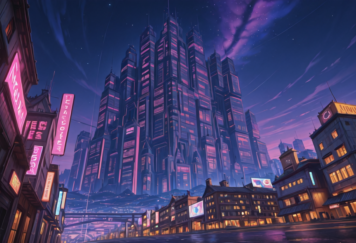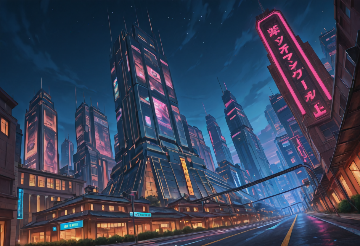 このLoRA向けのプロンプトは、(サイバーパンク建築、建物、街)です。