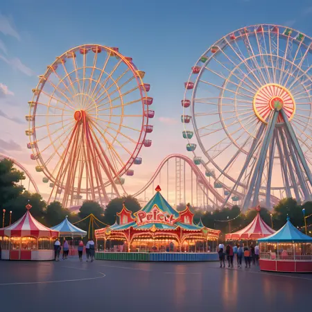 Optional: outdoors, ferris wheel, amusement park, roller coaster