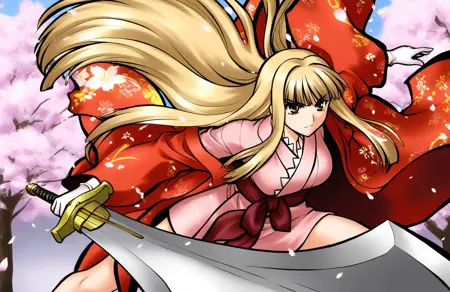 来自《侍魂闪》的铃姬。14岁,金发长发,性格傲慢好胜的公主,手持与自己身高相仿的巨大巴斯塔德巨剑,以蛮力风格战斗——这样的角色,若放在今天绝对会大受欢迎,但因“政治正确=爆死”的法则,导致她知名度极低,后续系列也未能复活……实在太不幸了,至少请让AI让她重生吧!铃姬!