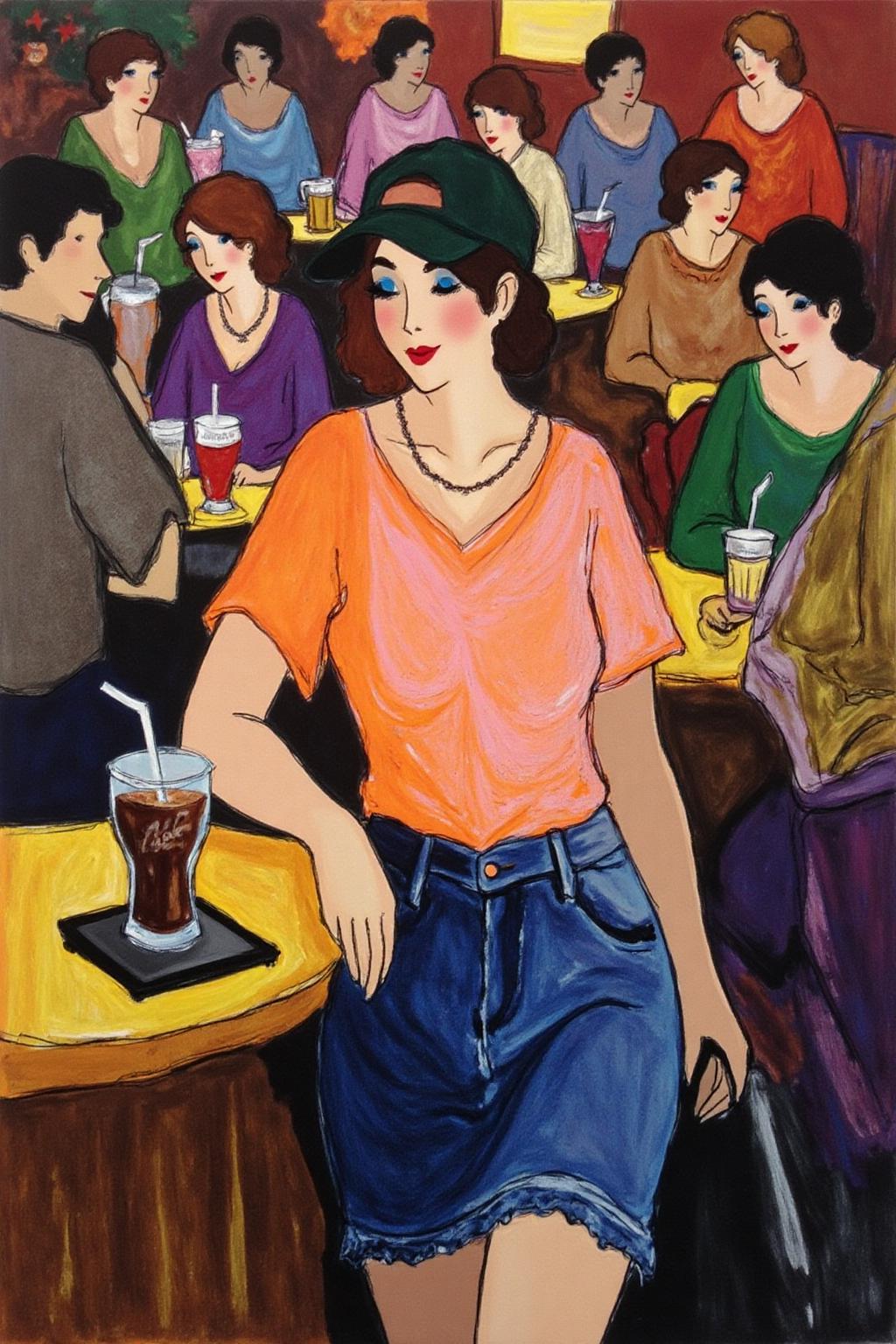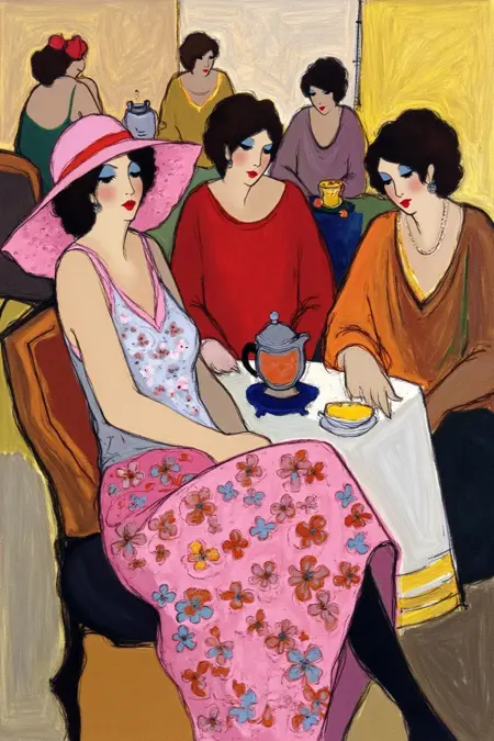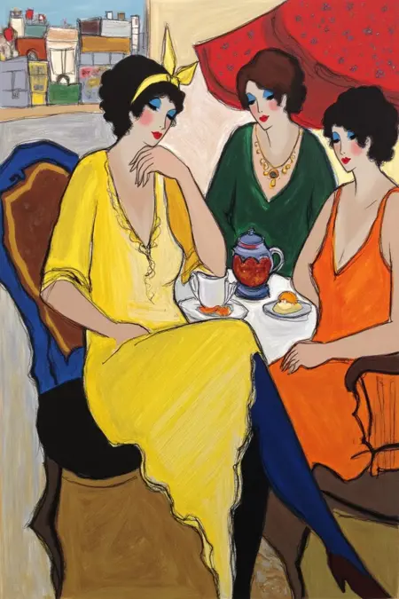• 巴黎咖啡馆场景和时尚女性为主题,常以大胆色彩与梦幻印象派风格呈现。