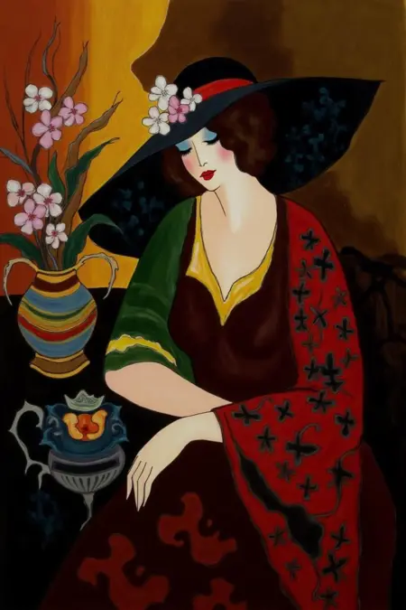 • 风格化肖像——许多现代画家采用Tarkay的方式,结合大胆轮廓与柔和色彩晕染来描绘女性形象。