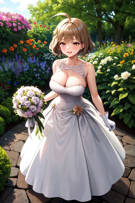 아우트핏3 (자켓 미착용)hmanis, short hair, ahoge, hair ornament, eyewear on head, necklace, cleavage, eyepatch bikini, white bikini, bare arms