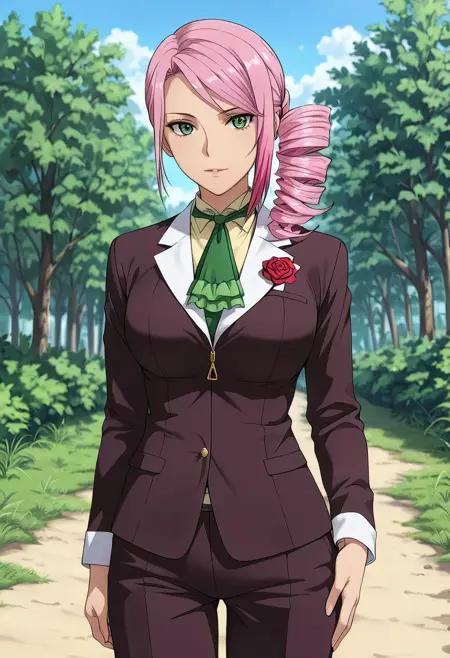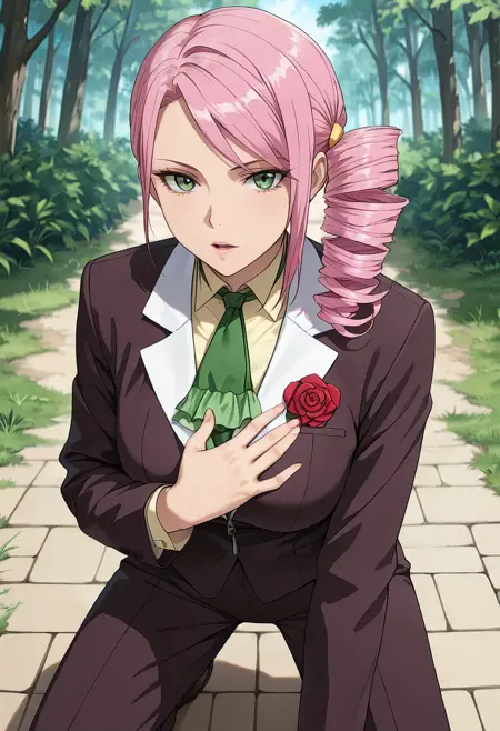 (suit, formal, necktie, green_necktie, red_rose, shirt, ascot, school_uniform, suit_jacket,