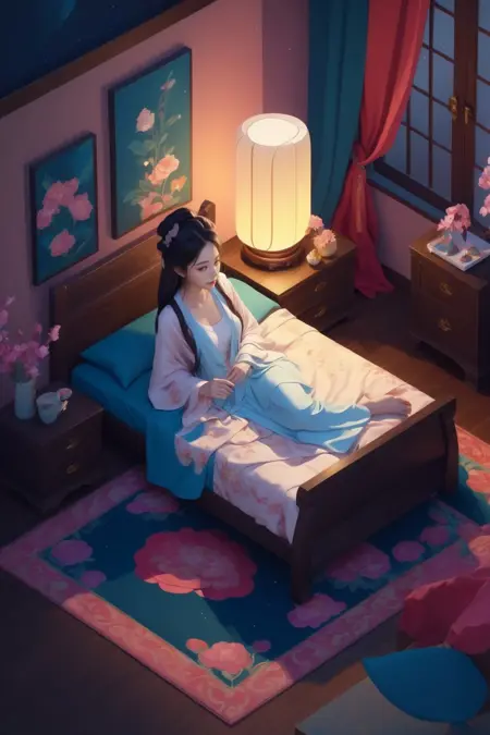 Indoor setting, outdoor setting, bedroom setting, ancient Chinese architecture