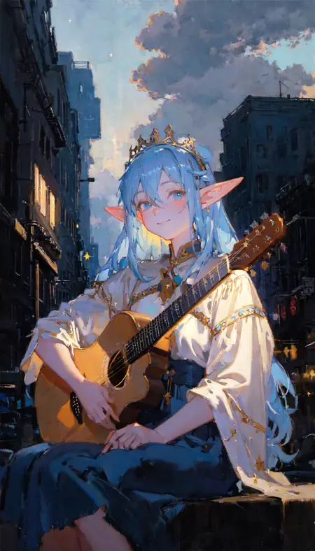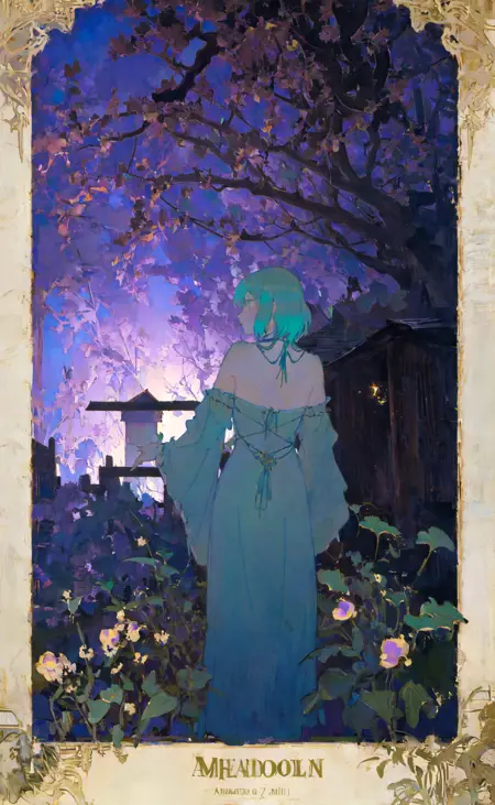 Updated Ether One and added a pinch of Ether Blu 7 to increase vibrancy, as well as making illustrations more expressive. Lots of weight changes designed to further refine the painterly style. Tuned faces to be a little more semi-realistic, though still very much anime. Finished off with some LORA's to compliment the overall style.
