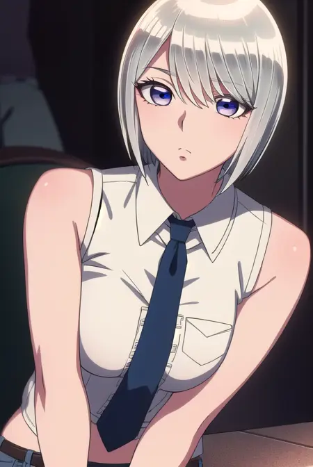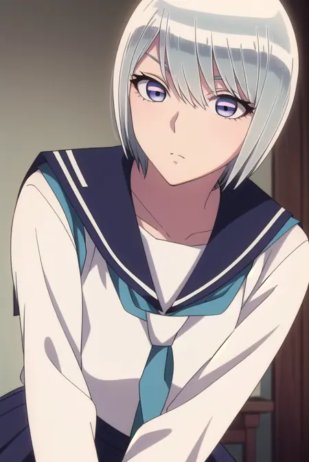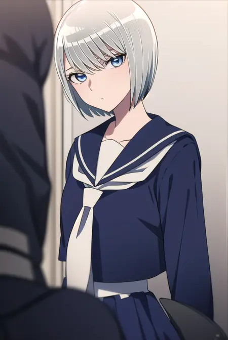 eleonore, short hair, white hair, (white eyes:1.5),