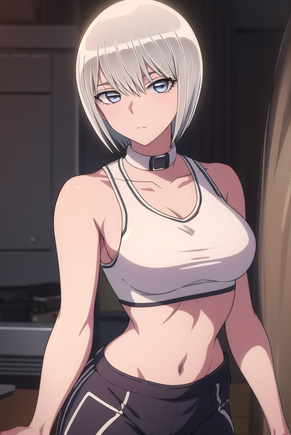 navel, midriff, collar, sports bra, pants,