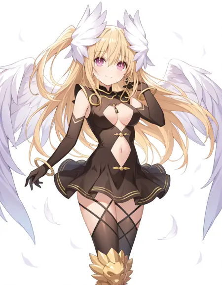 MayuriSpirit,张开双臂,spt_elbow_gloves,spt_dress,spt_head_wings,spt_bracelet,spt_thigh_boots,spt_thighhighs,spt_angel_wings,spt_detached_wings,多对翅膀,肚脐