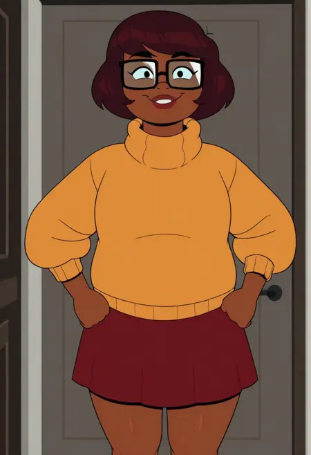 Starter tags: velmahbo, dark-skinned female, red lips, glasses, chubby, thick,