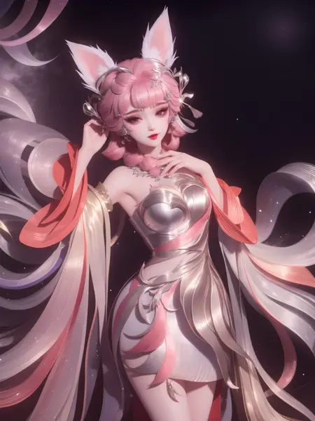 これは中国のモバイルゲーム『王者栄耀』に登場するキャラクター——妲己・青丘・九尾です。このLoRAトレーニング画像セットには実在の人物の画像は一切含まれていません。ベースモデルには国風V3.3を使用しています。LoRAの参照重みは0.75です。国風V3.3と互換性の高いモデルには、ReV Animated、DreamShaper、GCM-Game Concept Map などがあります。これらのモデルを使ってAI描画を試してみてください。