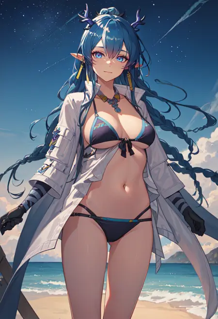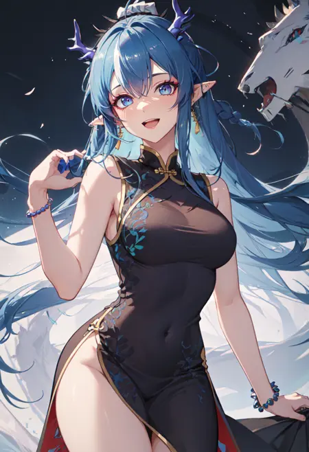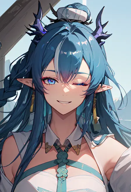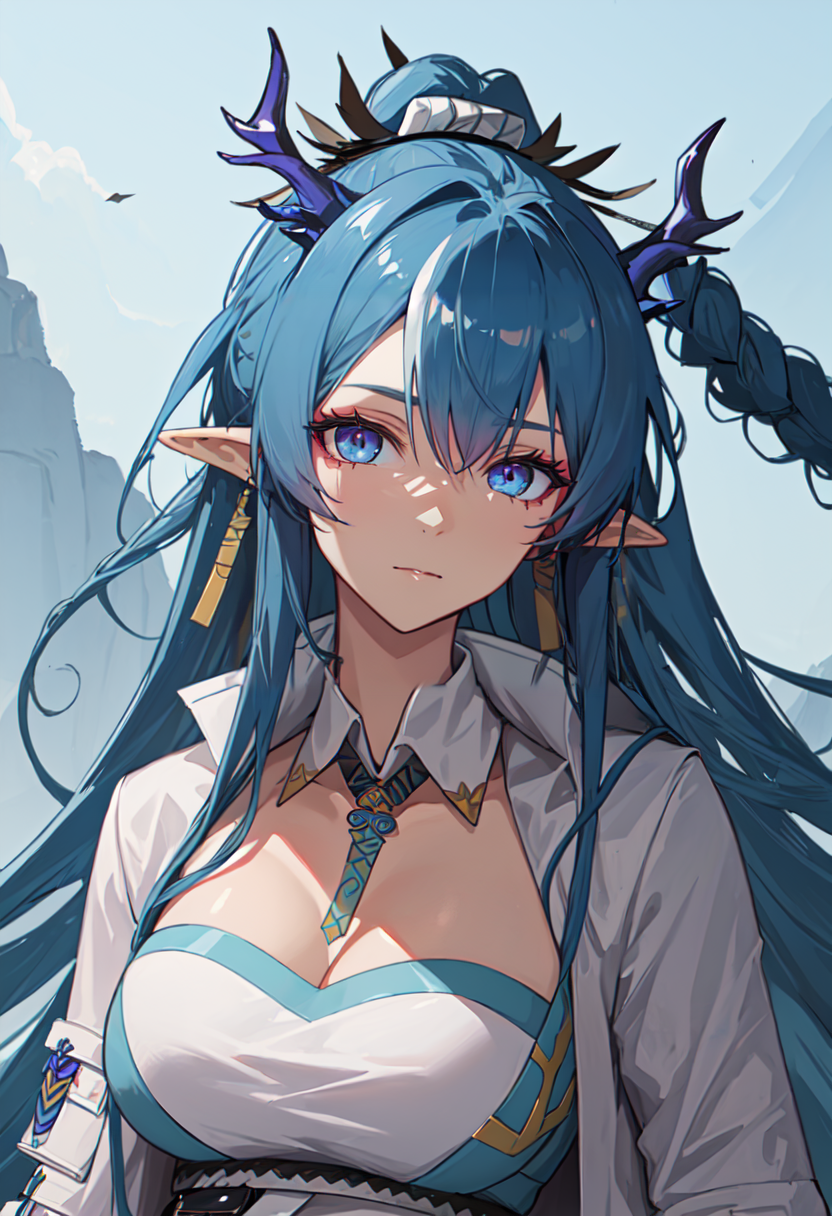 - プリューンされたキャラクタータグは、青髪、長髪、角、ドラゴン角、尖った耳、非常に長い髪、胸、青い目、イヤリング、ドラゴンガール、ツインテール、複色髪、大胸、尾、ドラゴン尾です。キャラクターの核となる特徴(例:髪の色)が安定しない場合、これらのタグをプロンプトに追加してください。