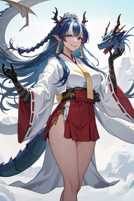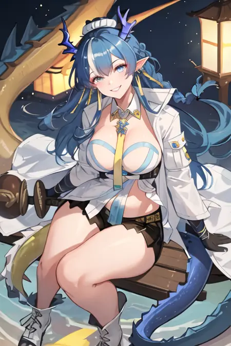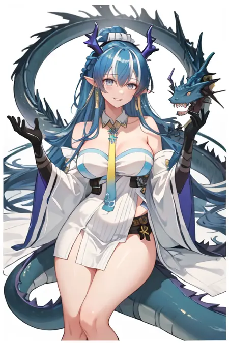 - 축소된 캐릭터 태그는 파란색 머리카락, 긴 머리카락, 뿔, 드래곤 뿔, 뾰족한 귀, 매우 긴 머리카락, 가슴, 파란 눈, 귀걸이, 드래곤 소녀, 땋은 머리, 다색 머리카락, 큰 가슴, 꼬리, 드래곤 꼬리입니다. 캐릭터의 핵심 특징(예: 머리색)이 안정적이지 않을 때 이 태그들을 프롬프트에 추가할 수 있습니다.