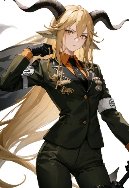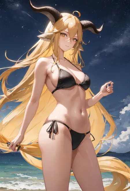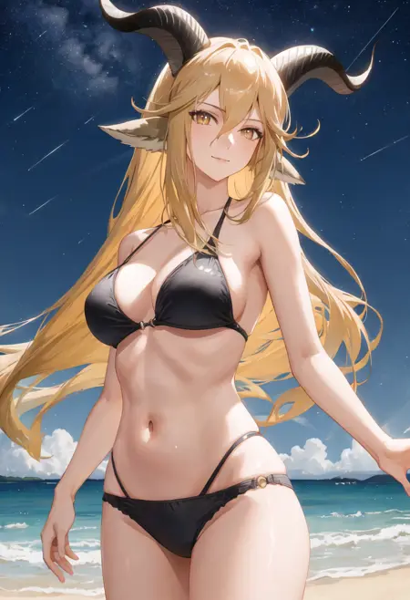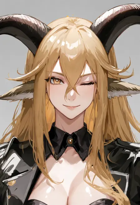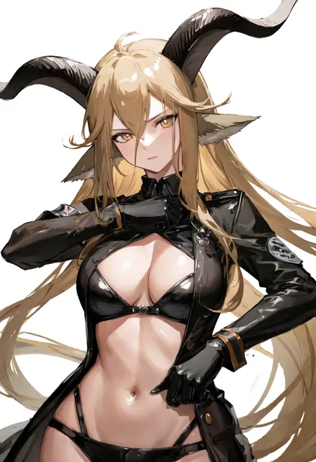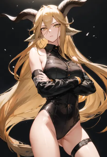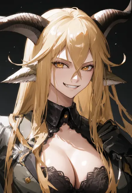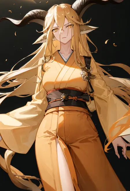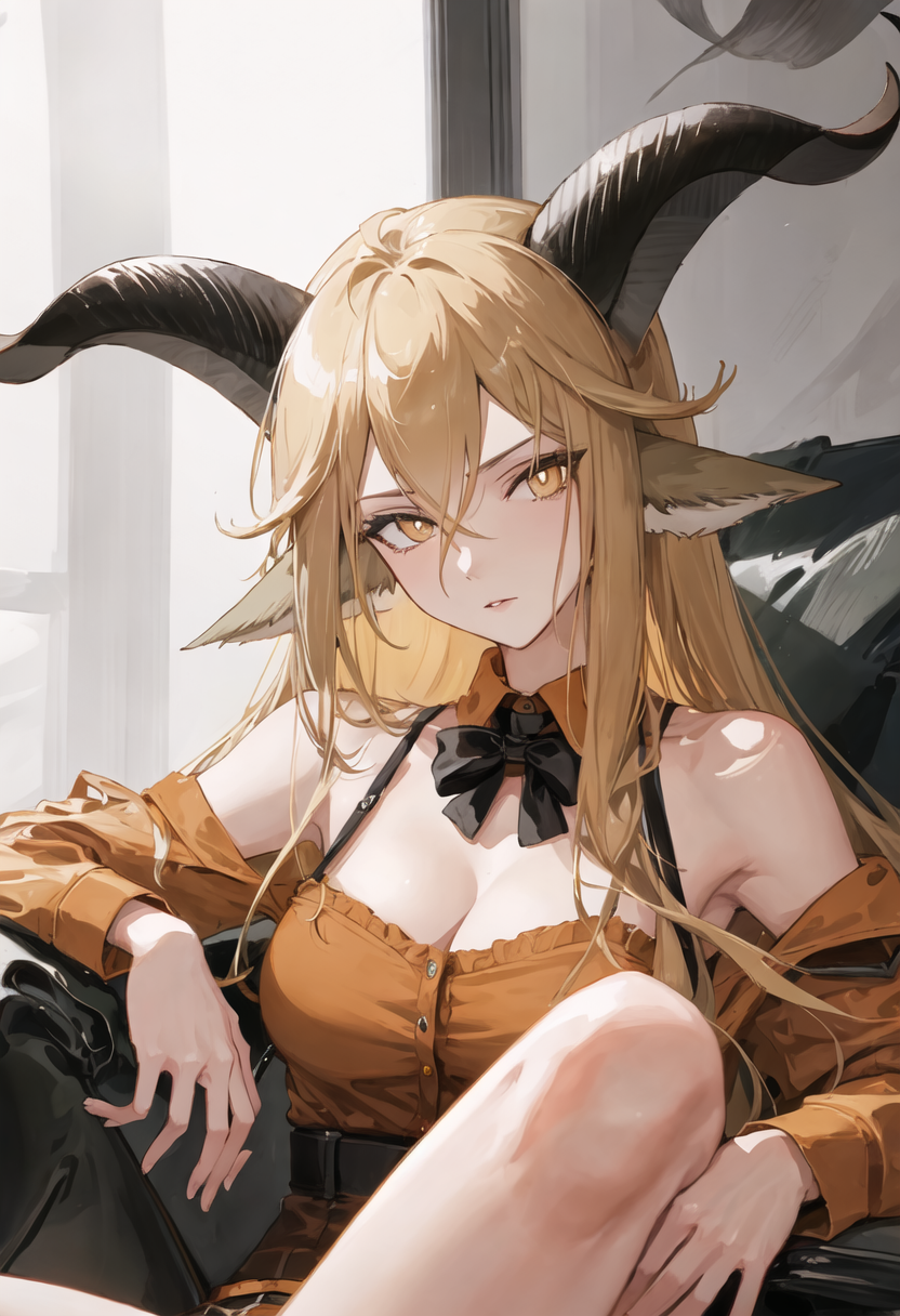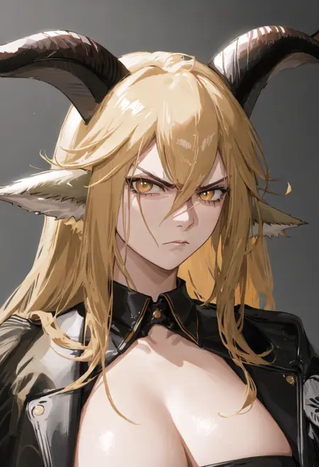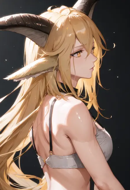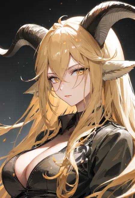 - The pruned character tags are horns, long_hair, animal_ears, blonde_hair, goat_horns, goat_ears, bangs, hair_between_eyes, yellow_eyes, very_long_hair, goat_girl, breasts, large_breasts. You can add them into prompts when core features (e.g. hair color) of character is not so stable.