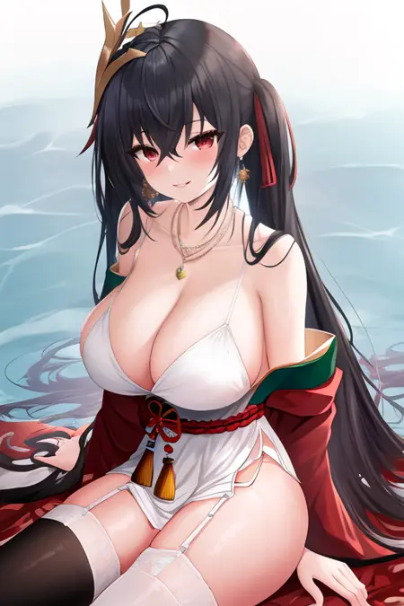 - The pruned character tags are long_hair, black_hair, breasts, red_eyes, bangs, large_breasts, hair_between_eyes, very_long_hair, ahoge, crossed_bangs, hair_ornament, huge_breasts. You can add them into prompts when core features (e.g. hair color) of character is not so stable.