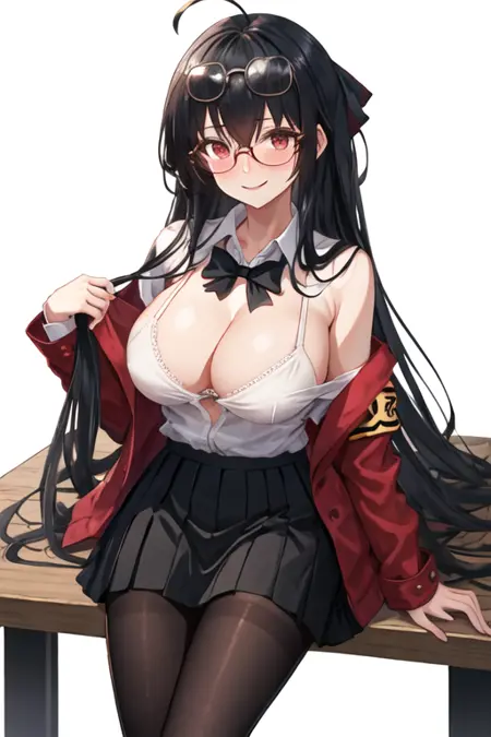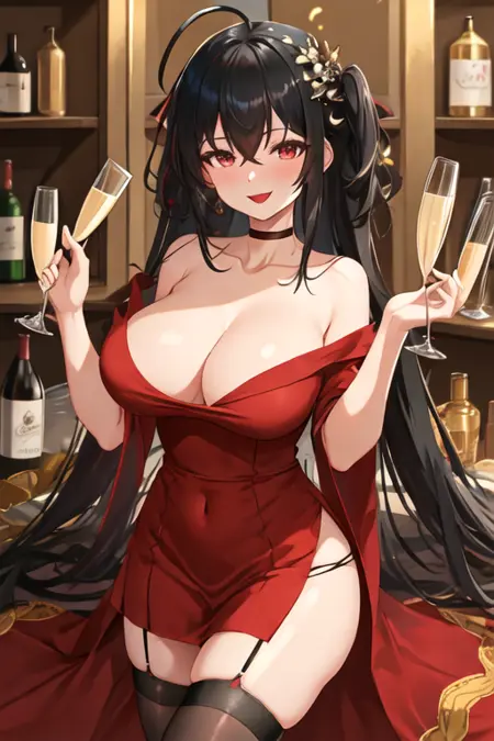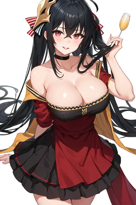 触发词为 taiho_azurlane,已精简标签为 long_hair, black_hair, breasts, red_eyes, bangs, large_breasts, hair_between_eyes, very_long_hair, ahoge, crossed_bangs, hair_ornament, huge_breasts。当某些特征(例如发色)在某些时候不够稳定时,您可以将这些标签添加到您的提示词中。