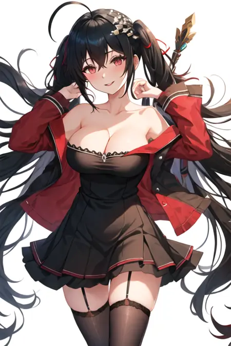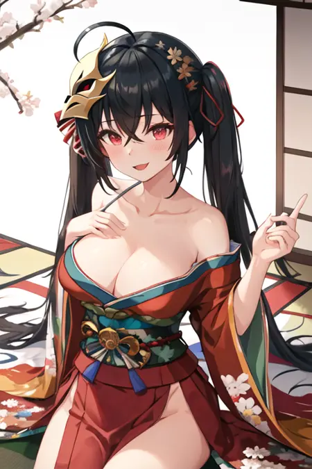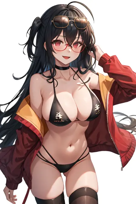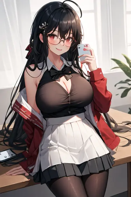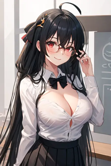 - 已精简的角色标签为:long_hair, black_hair, breasts, red_eyes, bangs, large_breasts, hair_between_eyes, very_long_hair, ahoge, crossed_bangs, hair_ornament, huge_breasts。当角色的核心特征(如发色)不够稳定时,您可以在提示词中添加这些标签。